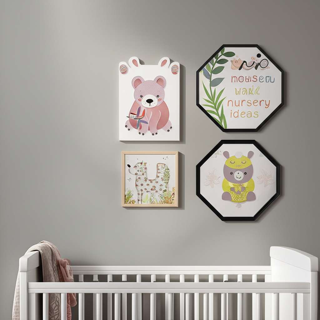A gallery wall is a fantastic way to display a collection of art. For a modern nursery, opt for a set of small, coordinated prints. This could be a series of animal illustrations, geometric shapes, or even framed photographs of family.