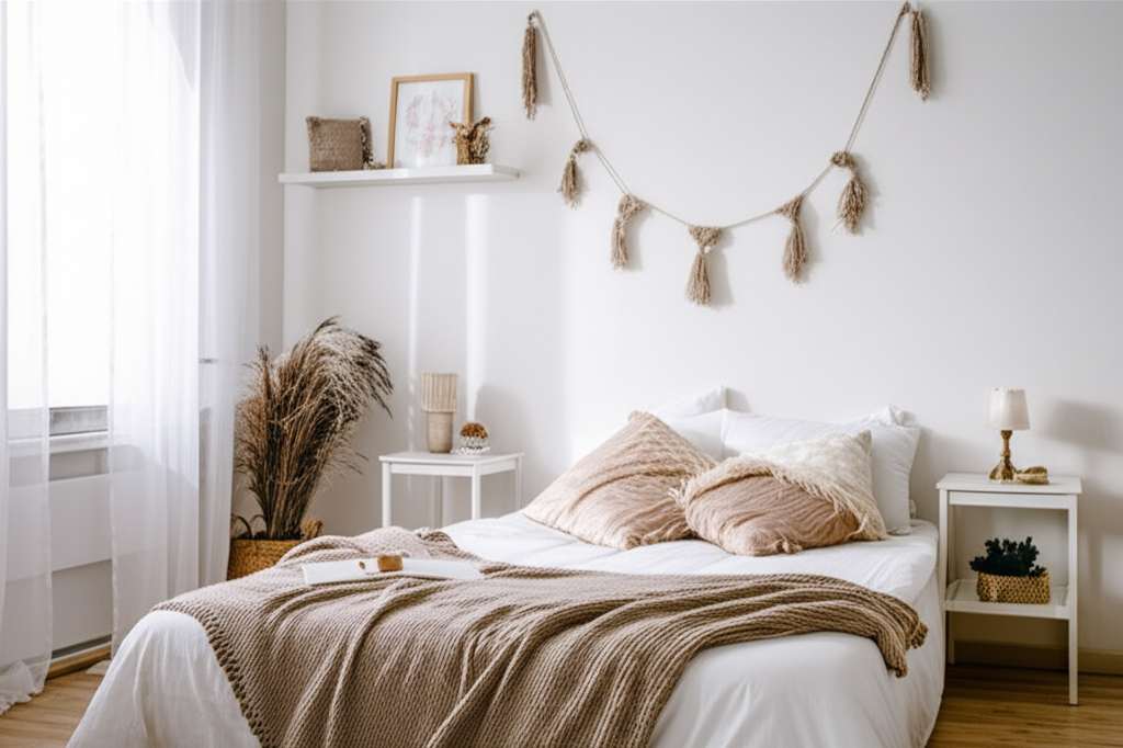 You can make your bedroom cozy on a budget by focusing on textures. Add soft throw blankets, plush pillows, and a comfortable rug. You can also thrift for decorative items, rearrange your existing furniture for better flow, and use softer lighting from lamps instead of harsh overhead lights.