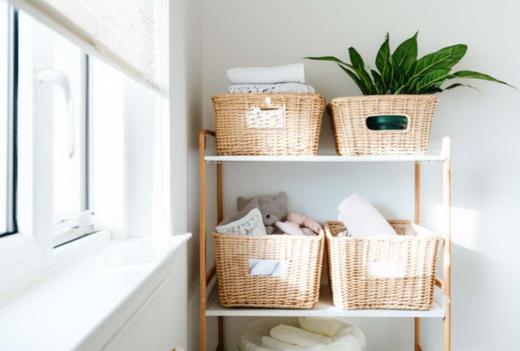 Store outgrown baby clothes, toys, or seasonal items elsewhere. Use bins labeled clearly and keep them in a closet, attic, or basement. Rotate items back in as needed.