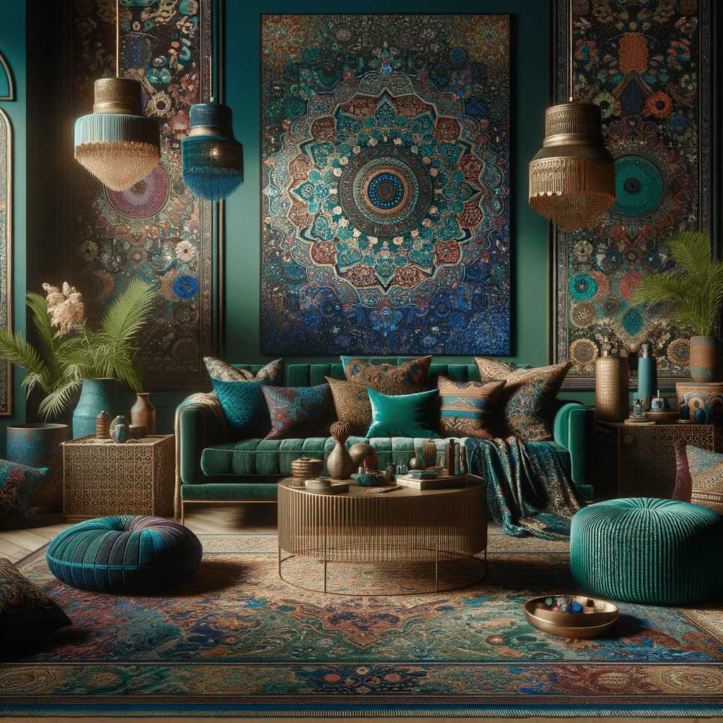 Consider using a variety of textiles such as linen, cotton, and velvet to complement your earthy and jewel tones. Throws and pillows in different fabric textures can enhance the bohemian vibe. Patterns like tribal prints, floral designs, or geometric shapes can add layers and visual complexity to the overall look.