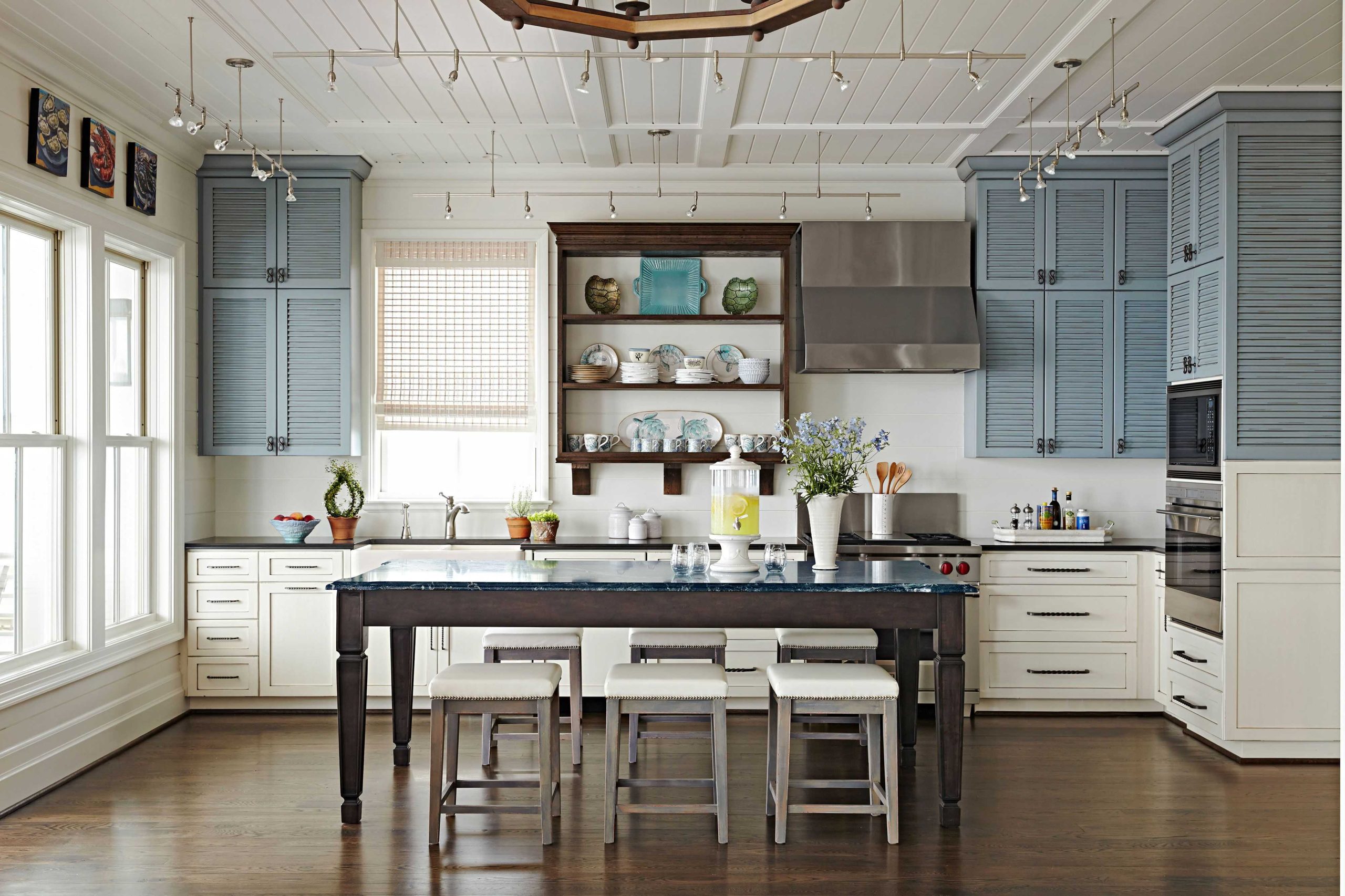 A kitchen island can be a centerpiece in your coastal kitchen.