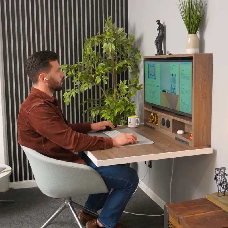 Wall-mounted desks attach directly to your wall, folding down when needed and lifting away when not. They are excellent for small spaces because they don’t take up any floor area. Some models include built-in shelves or storage compartments for added convenience.