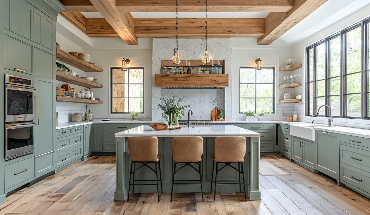 Green can be used as the main color in your kitchen or as accents to highlight specific areas. Painting walls in soft green tones creates a peaceful backdrop. Alternatively, adding green accessories or small decor pieces offers a fresh pop of color without overwhelming the space.