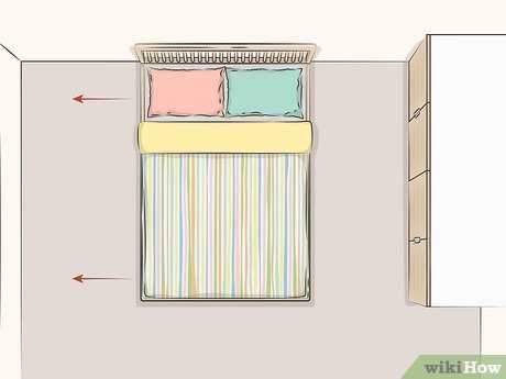 Position the bed against a wall to save space. Avoid placing it in the middle of the room unless necessary. If possible, place the bed near a window or a corner to maximize floor area.