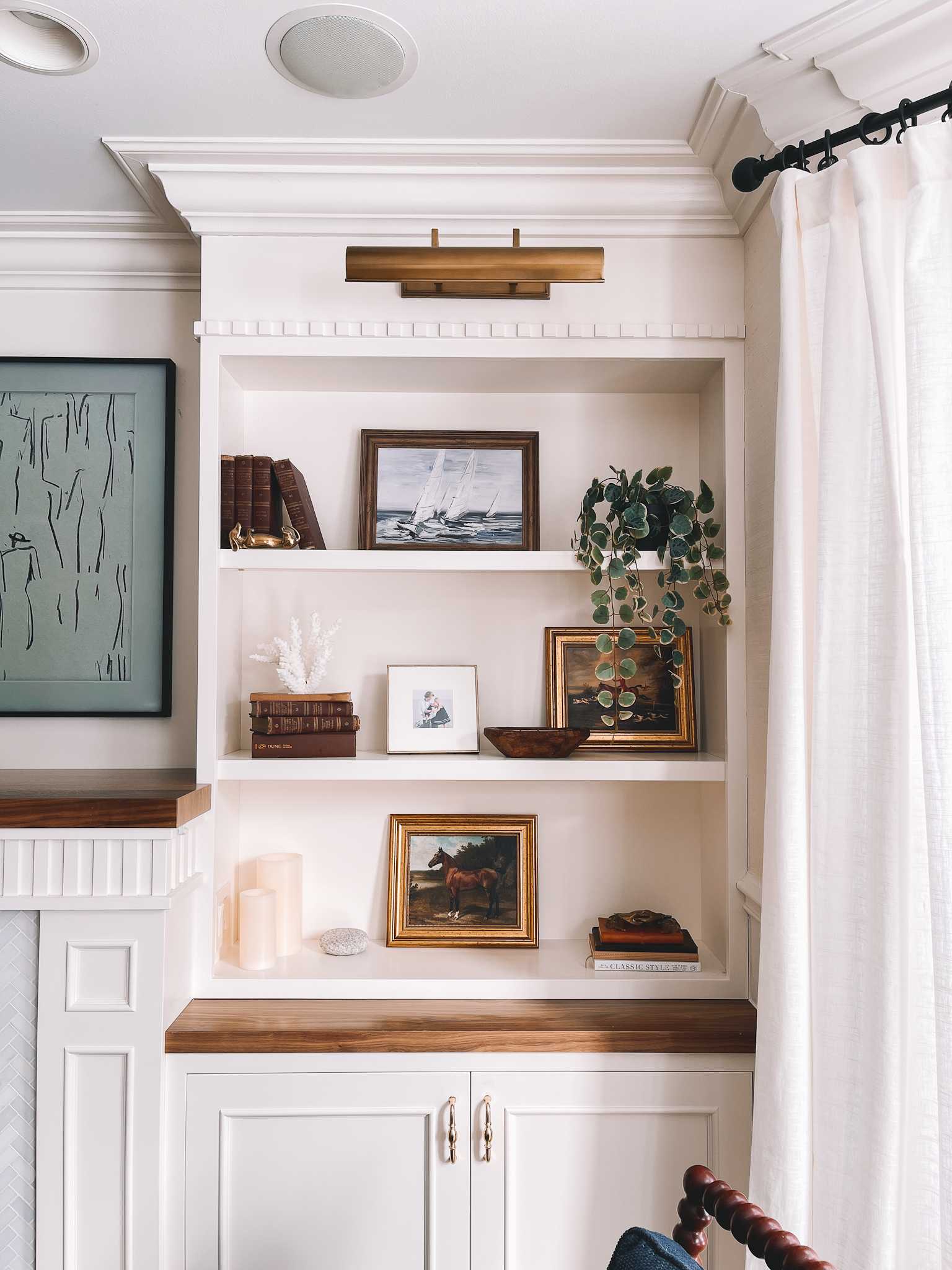 Adding personal items will make your shelves reflect your personality. Photos, heirlooms, and souvenirs from travels can tell a story.