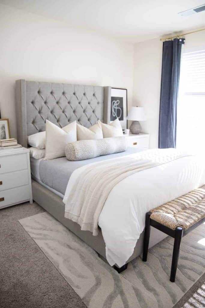 A well-placed area rug can bring warmth and style to your luxury bedroom.