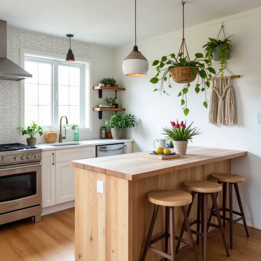 Natural wood brings an instant sense of warmth to a boho kitchen. Its earthy hues easily blend with colorful décor and eclectic accessories. Incorporating wood accents creates a cozy, inviting space that feels both relaxed and vibrant.