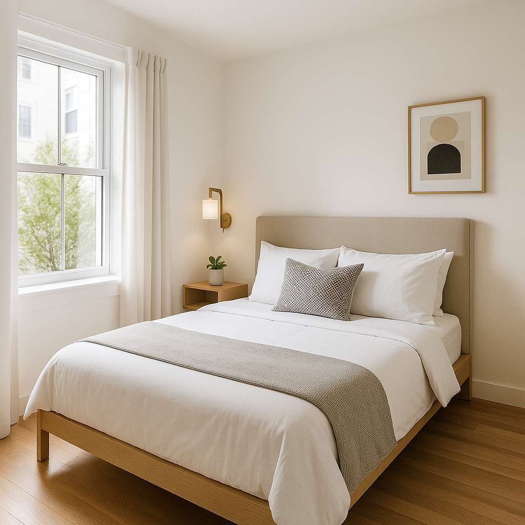 In small bedrooms, how you arrange your furniture makes a big difference. The goal is to keep the space feeling open and uncluttered. Here’s how:
